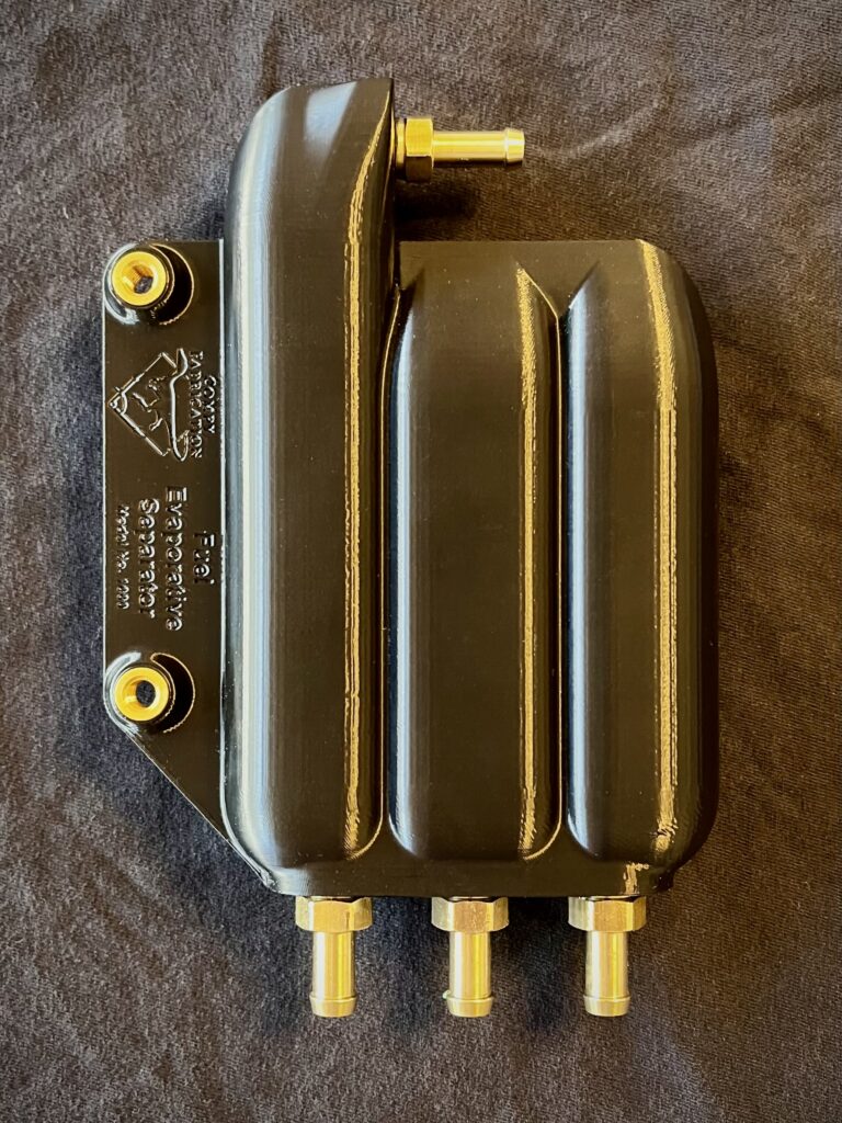 - Brass Hose Adapters: Our vapor separators have reinforced ports, are drilled/tapped for 1/8″ NPT threads, and come with brass hose adapters pre-installed.